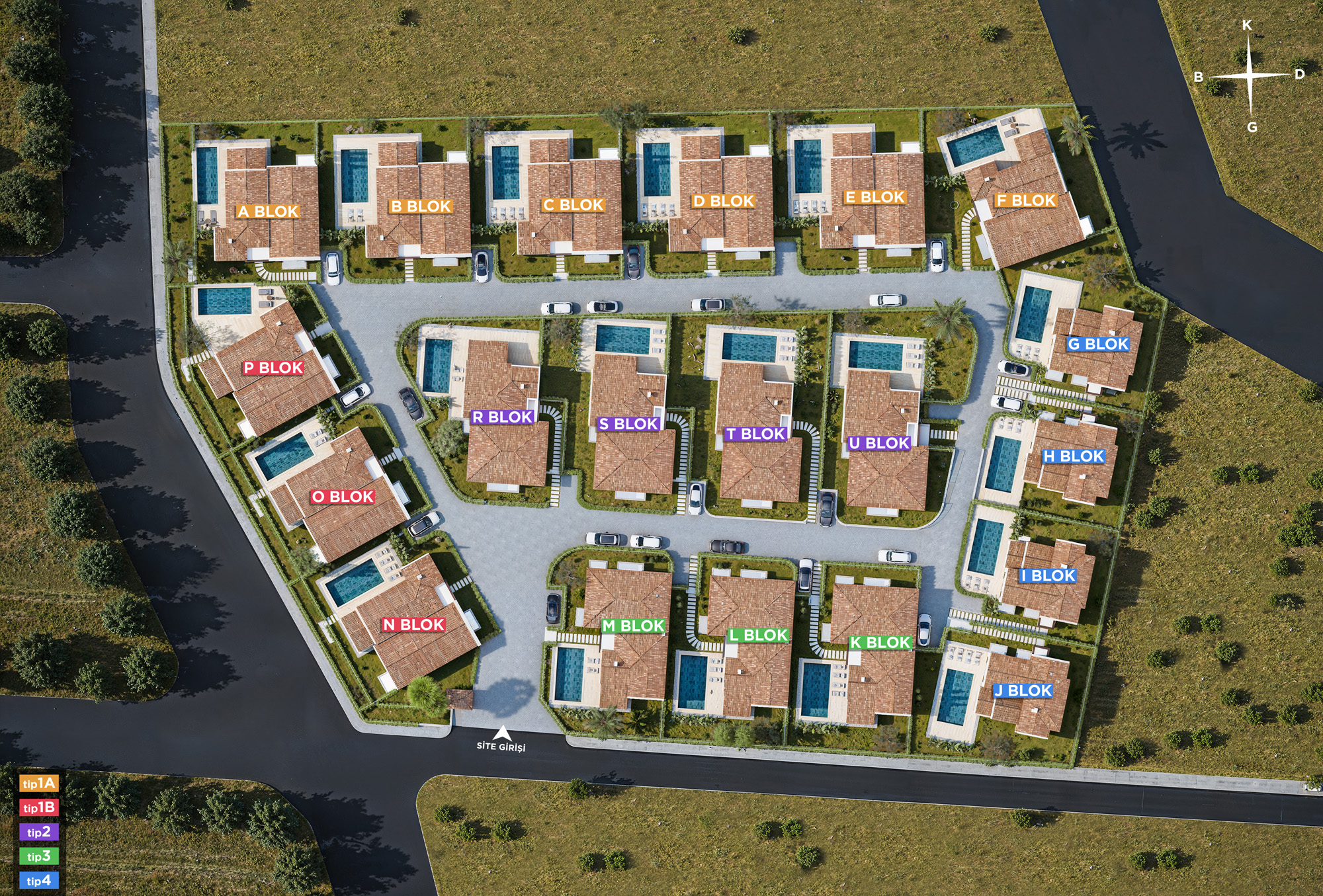 Bademler’in tarihi dokusuna saygıyla tasarlanan taş ve betonarmenin eşsiz uyumu. Her biri kendine ait bahçe ve havuzla dış dünyadan ayrışan 20 bağımsız malikanenin estetik ve mahremiyet üzerine kurulu silüetini keşfedin.